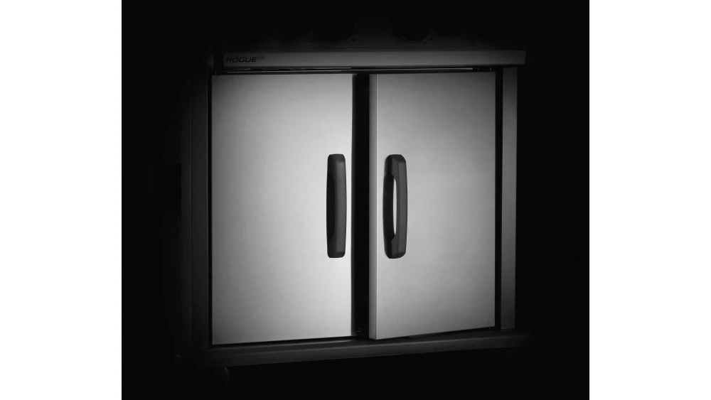 The enclosed cart offers storage space for tools and condiments, whilst the castor wheels make it easy to move the Rogue from place to place in your garden.